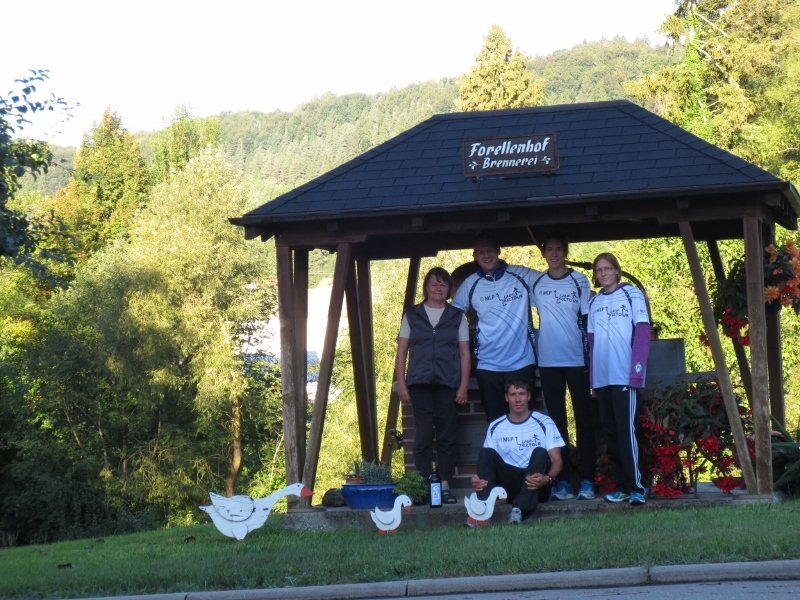 6:15 Uhr ging die Sonne auf. Der Regen war ganz vorüber und sogar ein paar Wolkenlöcher mit blauem Himmel dahinter zeichneten sich ab. Bald glitzerte die Wutach in der Sonne und all die Kälte, der Matsch und die Nässe der Nacht waren vergessen. Eine Gruppe Radfahrer, die auch Richtung Freiburg unterwegs waren, begleiteten unseren Läufer ein Stück und waren begeistert von unserem sportlichen Vorhaben. Doch noch begeisterter über die Leistung der 20 Studenten war die Besitzerin eines Wohnmobilparkplatzes in Murg bei Lörrach. Obwohl sie uns im ersten Moment noch Geld für Parkgebühren abnehmen wollte, gab sie uns am Ende etwas in die Spendenkasse für die deutsche Krebsgesellschaft und bot uns darüber hinaus eine erfrischende Duschmöglichkeit im angrenzenden Freibad an. Diese konnte leider nur die Hälfte der Busse in Anspruch nehmen, da der Rest weiter dem Läufer und seinem Radbegleiter nachfuhr. Die folgenden dreißig Kilometer sollten vor allem den Radbegleitern Schweiß, Maximalkraft und Ausdauer abfordern. Durch`s wunderschöne badische Land über "die sieben Berge" führte sie der Weg weiter Richtung Freiburg. Auf der letzten Vormittagsetappe von Team 3 rief Robin plötzlich überrascht: "Ehh, die Kamerafrau läuft ja wirklich mit!". Laufen ist Freiheit und die Freiheit teilen zu können, ist für jeden Läufer der Lauf-KulTour noch schöner. So war Jeannette für 10km in läuferischer Begleitung und Stephanie hatte kurz Drehpause. Danach war die Schicht für Radbegleiter-Team 1 zu Ende und sie konnten kaum erwarten, nach Freiburg zu fahren, wo Tee, Kuchen, eine Dusche und vorallem auch neue Energie für die Laptops bei einer Freundin von Franzi auf sie warteten. Die Gastfreudlichkeit, die allen Lauf-KulTouristen stets entgegengebracht wird, ist überwältigend und nur schwer konnte sich die Gruppe von Freiburg trennen. Jedoch war auch der herausfordernde Ruf des Tracks, der noch vor ihnen lag, unwiderstehlich. Bei Rust hielt das Radbegleiter-Team um 19:30 Uhr an um sich noch 5 Stunden Schlaf zu gönnen. Trotz der Freizeitparkgeräusche in der Nähe, der Schräglage der Betten und dem erneuten Tröpfeln von Regen auf das Wohnmobildach schliefen alle schnell ein. Morgen folgen wir dem Rhein Richtung Norden.