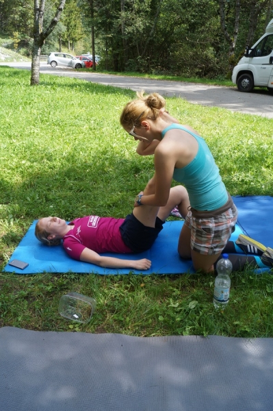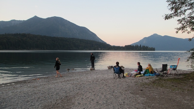 Die Abendschicht stand dann zunächst ganz im Zeichen Magdalena Neuners: Am Magdalena-Neuner-Wanderweg und an der Magdalena-Neuner-Loipe entlang ging es talabwärts in Richtung Walchensee (über dessen Umbenennung in „Magdalena-Neuner-See“ Gerüchten nach bereits ein Referendum in Vorbereitung ist). Dort hatten sich die anderen Läuferteams bereits am Ufer breit gemacht. Für uns blieb nur Zeit für einen kurzen Sprung ins eiskalte Wasser, dann hieß es auch schon wieder Zähne zusammenbeißen und in zwei Etappen ging es über die Jachenaustraße nach Lengries.