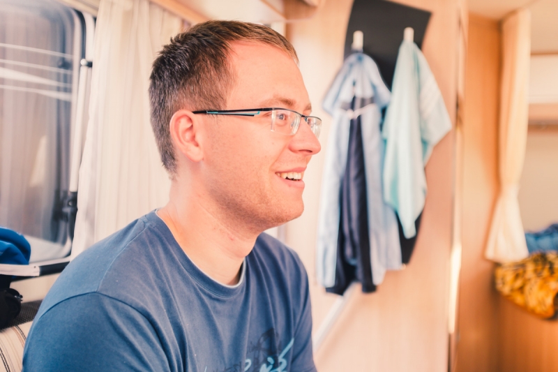 Basti tritt aus dem Hintergrund auf.