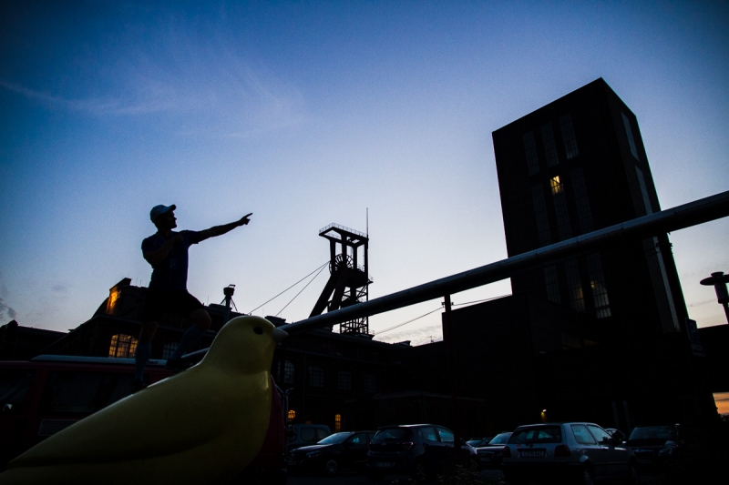 Eine Landschaft irgendwo zwischen Münster und Castrop-Rauxel. Steffen tritt auf.
