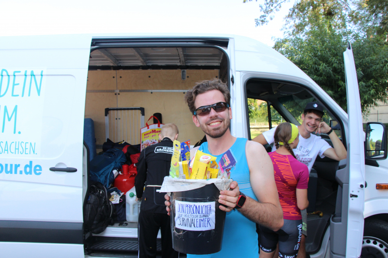 Unterstützt wurde unser Team in Halle durch 2 Läufer eines ansässigen Vereins, welcher selbst Spendenläufe durchführt. In Leipzig besuchte uns die Schwester von Thomas W. mit einem selbst gebastelten Plakat, Bananen und reichlich Süßigkeiten an der Strecke. Thomas‘ Zwillingsbruder stattete dem Team in der ersten Unterkunft einen Besuch ab und half beim Zubereiten der ersten warmen Mahlzeit der Tour – es gab ganz klassisch – Nudeln.