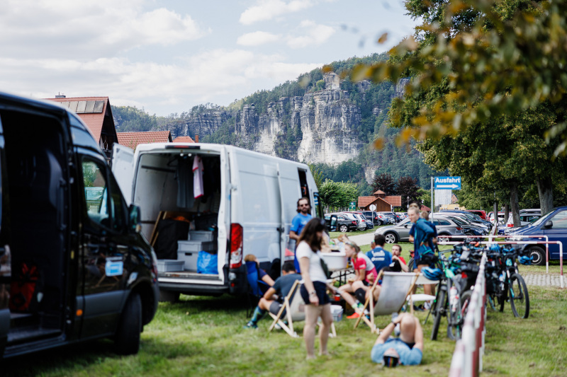 Die Pause war für Thomas besonders unangenehm. Sein neuer Fahrradhelm wurde leider durch ein stürzendes Fahrrad denkbar ungünstig getroffen und dabei in Mitleidenschaft gezogen. Ein Moment großer Enttäuschung, schließlich war das Schmuckstück in blau-metallischer Optik ihm bereits sehr ans Herz gewachsen. Ein Anruf später löste sich die Problematik in Wohlgefallen auf, denn es wurde extra für solche Notfälle Ersatzhelme durch ABUS zur Verfügung gestellt. Puh. Der Tag war gerettet.