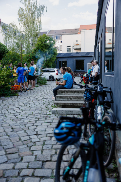 In Dresden angekommen trafen wir Familie und Freunde von Lucile, welche alles Mögliche unternahmen, um uns einen schönen Abend mit Grillgut, Salat, isotonischen Getränken und Kuchen zu bereiten. Beim Grillen ist Ronald sofort dabei und erschien pünktlich, nachdem er extra aus Chemnitz anreiste. Natürlich begleitet Ronald uns erneut sportlich auf der finalen Etappe.