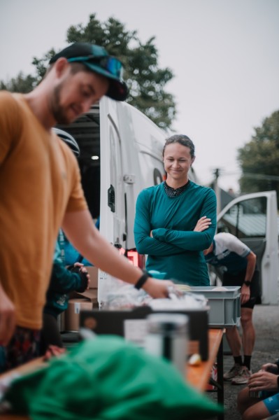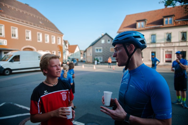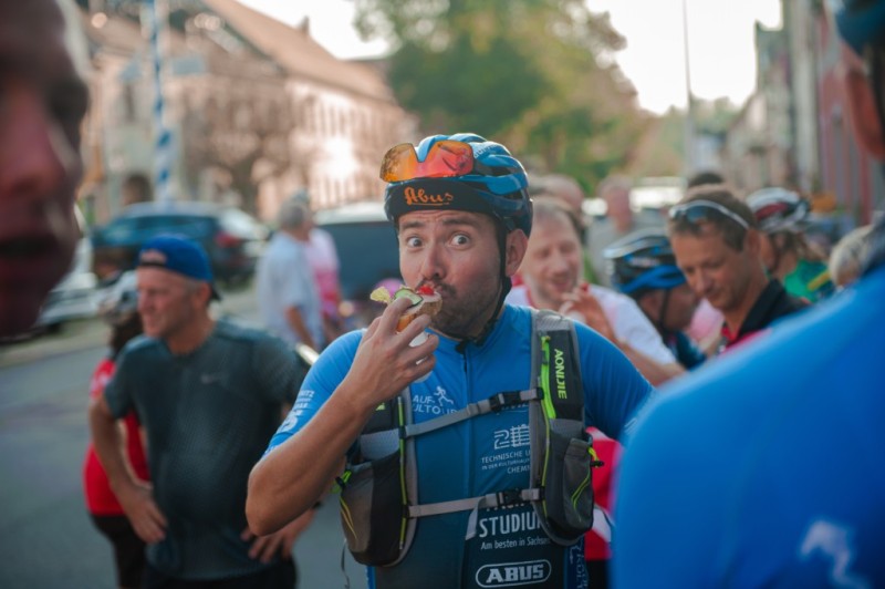 5:45 Uhr verließ Team 2 im Dunklen die Unterkunft und machte sich daran, die ersten 40km (?) zurückzulegen. Das Wetter war zu diesem Zeitpunkt noch recht angenehm. Im leichten Nieselregen zu Beginn waren die ersten Kilometer schnell geschafft und die Höhenmeter gestalteten sich recht human. Gut gelaunt erreichten wir den ersten Wechselpunkt in Tschechien und standen erneut vor einem reich gedeckten Tisch mit Brötchen, Obst und ganz wichtig, Kaffee.