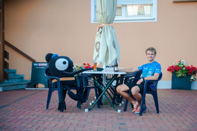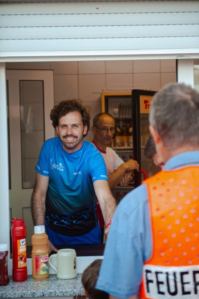 Nach einer kurzen Verschnaufpause war nun Team 2 an der Reihe, im Duathlonprinzip die nächsten Höhenmeter zu erklimmen. Aufgeteilt wurden die nächsten Kilometer zwischen insgesamt 4 Sportlern und einem Betreuer (Chris), einerseits um uns zu unterstützen, aber andererseits konnte er wahrscheinlich die Füße nicht still halten in seinem Transporter. Johanna absolvierte läuferisch die ersten starken Höhenmeter sehr erfolgreich und übergab im Anschluss an Lysiane. Nach erfolgreicher Übernahme der Musikbox meinerseits lief zu Beginn halbwegs humane Rock-Musik, bis Lysiane an Chris übergeben hatte. Da der Läufer leider Gottes die Musik bestimmt, wurde ich nun über eine Stunde mit Anime Openings beschallt, bei gefühlten 30 Grad. Zum Glück war ich als nächstes an der Reihe mit Laufen und obwohl es echt warm war, durfte ich endlich die Musik ändern und ärgerte nun alle mit Metal. Die letzten 14km lief Kilian in einem spitzen Tempo bis zum nächsten Wechselpunkt.