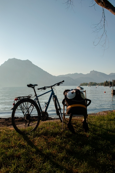 Direkt am See gelegen stand dann auch endlich meine Laufetappe an. Die Füße kribbelten und die Oberschenkel wollten endlich belastet werden. Meine 9 km standen an: Wechselpunkt direkt am See, die Temperatur steigt: Kurzum perfekte Bedingungen. Um vor lauter Euphorie nicht direkt alles an Energie rauszuschießen, habe ich als Begleitung heute Paula Hartmann gewählt (Album: „Kleine Feuer“; Große Empfehlung an der Stelle!). Und los ging es. Bei bestem Wetter konnte ich neun landschaftlich traumhafte Kilometer bis zum Wechselpunkt 1 abspulen. Am Wechselpunkt, kurz vor Gmunden, wechselte ich auf Johanna, die heutige Startläuferin von Team 2. Am Verpflegungspunkt angekommen hieß es erstmal durchatmen und Essen fassen. Wie immer hatte das wunderbare Betreuerteam für das „Warzenschwein-Team“ (Bezeichnung kommt von Chris, Team 1 definiert sich selber als Vielfraße), alles an Essen vorbereitet, was dringend weg muss. Also alles reingespult was da war und weiter geht es auf die Piste, doch was steht da, nach wenigen Kilometern? Eine wunderbare Seilbahn! Und hier kommt Team 1 ins Spiel: Nachdem wir Eltern, deren Kindern wir ihr Spielgerät weggenommen haben, unser Projekt erklärt hatten, fuhren wir nacheinander alle mit der Seilbahn vor dem Traunsee-Panorama. Wenn es auch nicht die schnellste Seilrutsche bisher war, so war doch die Aussicht am schönsten. Kurzes Video, kurze Fotos, weiter geht’s. Kurz nach dem Traunsee musste Team 1 aber wieder stoppen: Sturz von Daniel; die Kette hatte sich verhakt. Heißt: kurz Wunden säubern, Rad nochmal notdürftig einstellen und Gummibärchen nachschieben, an denen es dank Teamchef Thomas nie mangelt. Daniel erholte sich glücklicherweise relativ schnell vom seinem Sturz, auch wenn die Schaltung ein bisschen gelitten hatte.