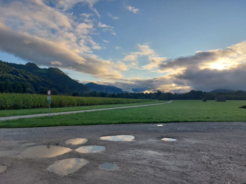 Inzwischen war es hell und die österreichische Bergwelt zeigte sich in voller Pracht. Die Fahrt kam einem dabei so vor, als wäre man auf einer Werbe-Tour für Österreich. Ein Postkartenmotiv nach dem Nächsten. Wenn wir nicht vorwärts kommen müssten, hätten wir gern öfter angehalten um das Panorama zu genießen und Fotos zu schießen.
