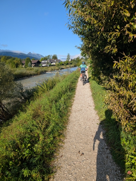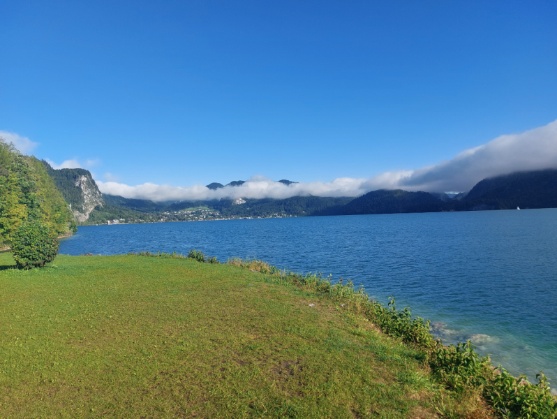 Die Sonne entfaltete immer mehr Kraft, die Radelfreude stieg und ließ das gestrige Mistwetter schnell vergessen. Es dauerte nicht lange, da erreichten wir Bad Ischl. Hier waren wir bereits im letzten Jahr mit unserer Tour. Und so kam es, dass uns die nächsten Kilometer vertraut vorkamen. Letztes Jahr auf gleicher Route, nur andersherum. So war dann auch bekannt, dass der Wechselpunkt am Wolfgangsee nicht mehr weit sein würde.