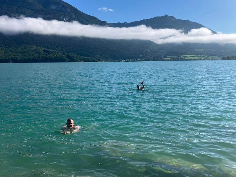 Beide hatten heute die längste Etappe vor sich, denn der erste Wechselpunkt musste natürlich so geplant werden, dass dieser am Wolfgangsee liegt. So hatte jeder im Team die Chance diesen herrlichen See zur Erfrischung zu nutzen.