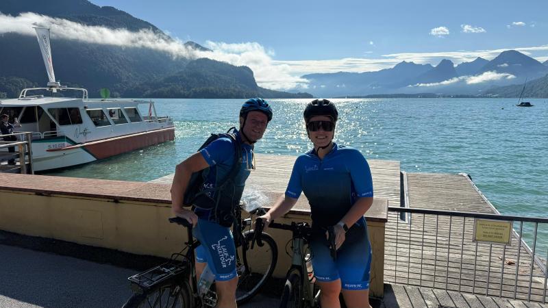 Etappe 2 war ähnlich idyllisch wie bereits Etappe 1 am Morgen, denn die Route führte weiter rund um den Wolfgangsee, weiter zum Mondsee und weiter nordwärts vorbei am Attersee. Wenn nicht die nächsten Radler schon auf die Übergabe gewartet hätten, wären Julia und Henrik sicher auch noch einmal an einer der vielen Badestellen abgebogen - denn die Sonne meinte es inzwischen echt gut. Schwitzen garantiert. Egal ob bergauf oder bergab.