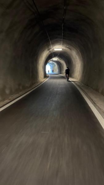 Teilweise fuhren wir auch über das Wasser, denn auf einem Abschnitt leitete uns die Route über einen Steg, der aus Platzmangel direkt am Fels über der Wasseroberfläche montiert wurde.