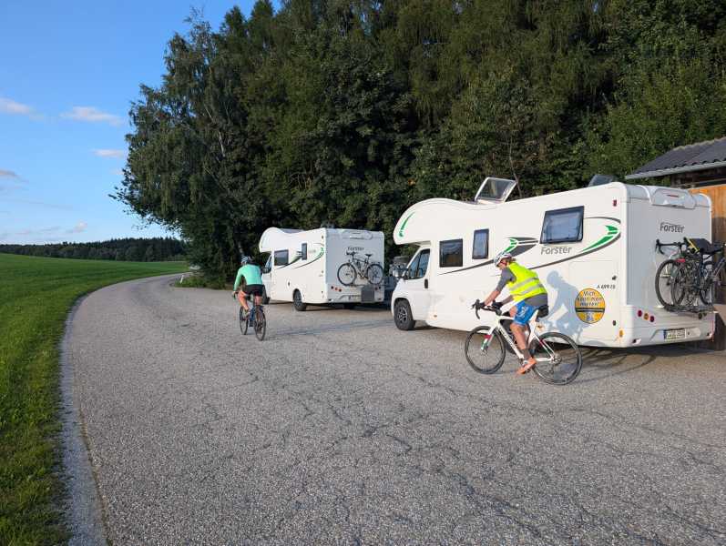 Im Anschluss ging es dann für Karl und Thomas auf die verbleibenden 65 km des Tages nach Tschechien und in die Nacht hinein. Neben einem welligen Streckenprofil, welches ebenso aus den Vorjahren bekannt war, gibt es dabei heute glücklicherweise von keinen weiteren Schreckensmeldungen zu berichten. Und so wurde beide gegen 21:00 Uhr in einem ruhigen Waldstück irgendwo in der tschechischen Prärie mit einem fertigen Abendmahl vom Rest des Teams empfangen.