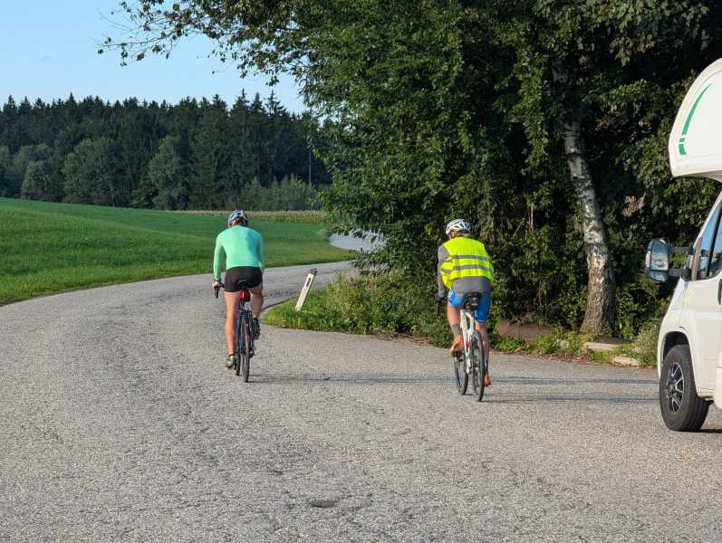 Für Daniel und Flo A. stand nun ein ebenfalls aus dem letzten Jahr bekannter Abschnitt auf dem Plan: Von Schwanenstadt über Wels und Linz bis hinauf zum Geiselsberg. Übersetzt also: Die ersten zwei Drittel in Flussnähe der Traun, gefolgt von Stadtverkehr durch Linz und als Abschluss dann 10 km bergauf aus Linz hinaus.